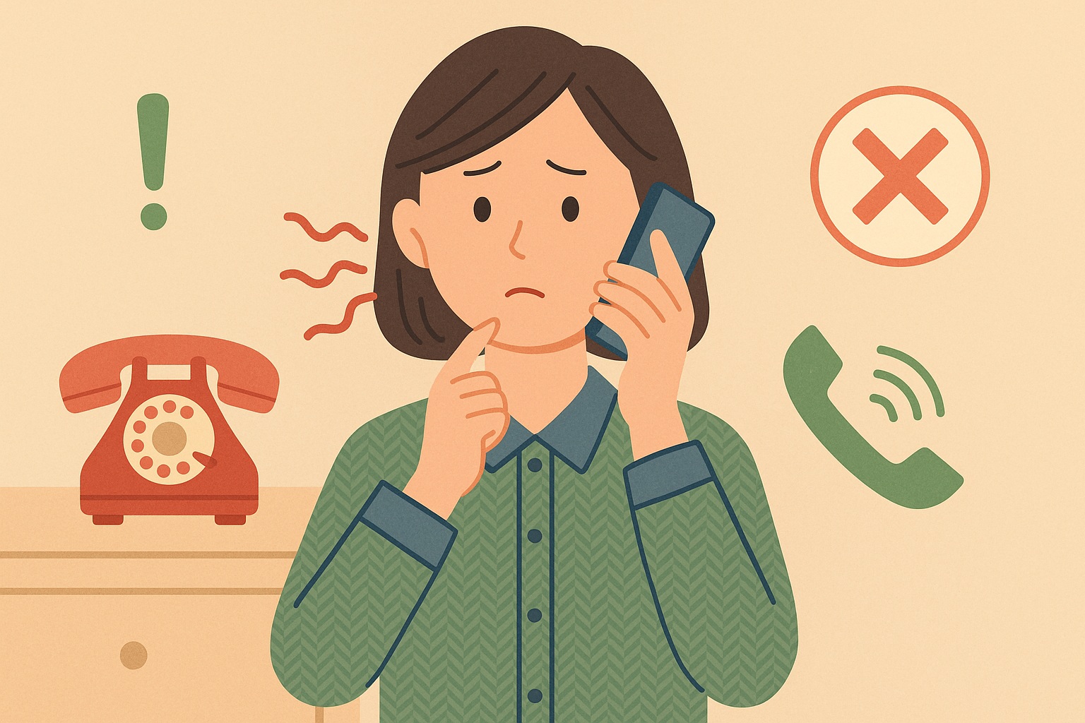 別のケースでは、実家の固定電話が古い機種だったため、外線の切り替えがうまくいかずプープープー音が頻発したこともありました。